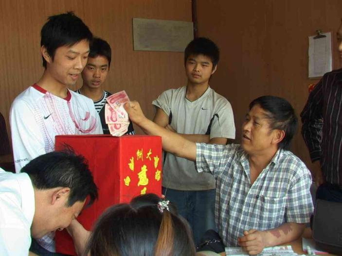 5月15日上午,武汉白沙洲大市场在粮油交易区组织经营户,以捐款的方式为受灾人民提供援助,帮助他们共渡难关,早日重建家园。 粮油交易区的商贩们积极响应号召,踊跃向四川汶县地震灾区捐款、献爱心,场面感人。
