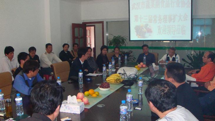 2008年10月16日上午九时,武汉市蔬菜副食品行业协会十三届第四次常务理事扩大会在白沙洲市场会议室召开,参加会议的有:会长、常务副会长、秘书长、副会长、副秘书长、白沙洲市场总经理及蔬菜部经理、市场蔬菜协会会长。