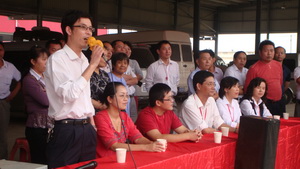 赛前,公司总经理周国斌为活动致辞——时值新中国成立60周年,公司举行拔河比赛,与各位商户共聚一堂,增进沟通、增强合作,共促市场繁荣、发展。希望所有员工发扬顽强拼搏、团结协作的精神,赛出实力、赛出风采。