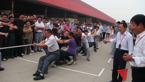 2009年9月27日下午13:30分,在白沙洲大市场果品交易区空地上举行了一场别开生面的“白沙洲大市场迎国庆庆中秋”拔河比赛。公司各部门组成的6支队伍与市场3支协会代表队共9支队伍参加了本次比赛。