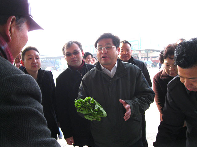 公司董事长张志伟、总经理陈欲就等高层领导全程陪同参观,市领导先行参观了我司整体布局,并重点考察了蔬菜交易区,文副市长在安达商行听取了安义明经理介绍目前的经营情况,副市长也与供货商进行了深切交流,询问了春节期间蔬菜的供应、价格以及市场稳定情况。随后,文副市长一行来到我司会议室进行座谈,重点听取了我司在面对同行业同质化无序竞争所采取的管理措施、经营状况以及蔬菜、水产品价格运行分析报告。