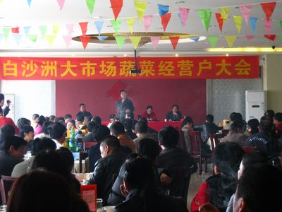 会上,蔬菜部经理徐明安一一介绍了此次参会领导及嘉宾;宣读了《蔬菜行业协会规约》,即白沙洲大市场的蔬菜经营户劲往一处使、拧成一股绳,与白沙洲大市场一起共同面对外部竞争。共同承诺不在其他同类市场经营,严格遵守武汉白沙洲农副产品大市场有限公司的收费模式和标准,诚实经营。经营户们纷纷响应大会号召,积极签订蔬菜新的合约。至此,白沙洲大市场蔬菜市场正式开始启动。