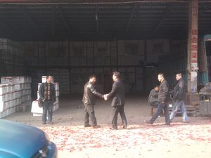 2011年3月28日上午8点58分,武汉白沙洲农副产品大市场迎接经营户回归仪式准时开始。由武汉白沙洲农副产品大市场有限公司总经理王总、业务营运顾问龚利斌、蔬菜协会会长安义明等齐手点燃喜庆的鞭炮,欢迎咱们大市场广大经营户回家!