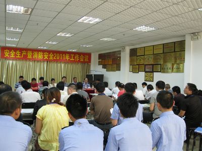 会上,公司物业总监陈远豪首先对2011年消防工作形势做分析报告,以及2011年安全生产及消防工作重要部署。随后,公司各部门负责人依次向总经理王总递交消防安全责任状。会议第三项,公司总经理王总做2011年安全工作、消防工作总结。最后,派出所领导对本次会议也发表了重要讲话,并列举了前期武汉市相关地区发生火灾事故的真实案件,重申了消防安全的重要性。