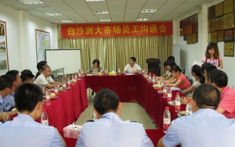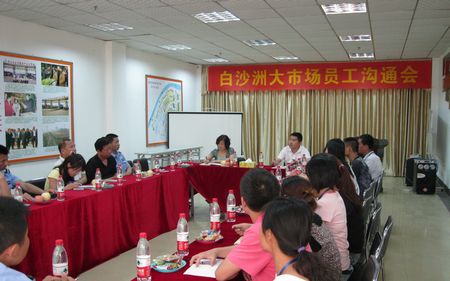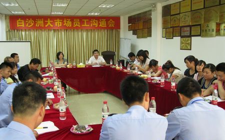 后期公司将定期举办员工沟通会,使更多的领导与员工参与进来。通过本渠道拉近公司领导与员工的距离,加强彼此沟通,从各方面完善市场管理秩序,共同开创白沙洲大市场的美好明天!