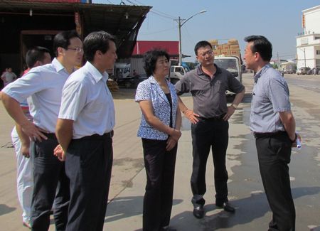 在总经理王善飞、副总经理梁善成、蔬菜部经理徐明安等公司领导的陪同下,农业部党组成员张香玉一行首先重点调研了蔬菜北区安达商行和南区天助商行的经营情况,并听取了王总关于夏季期间农产品供应情况的汇报;而后依次视察了粮油干调区、水产区、冷库区的整体情况,席间还听取了武汉市各职能部门的分管领导对我司经营现状分析,以及今后支持大市场发展的报告。